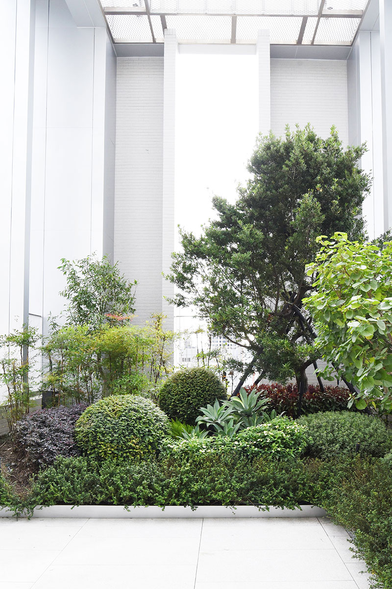 本案位處惠中路西側淨巷內,原址為達新工業創辦人之一胡春達先生故居。本案執行過程中以建構喬木適宜的生長環境為主要考量,於平面配置時即將土球尺寸與植栽重量列入評估確實檢討樓板載重與地坪間的退縮尺寸。期盼隨著時間的推移,各式植種均能日漸茁壯。