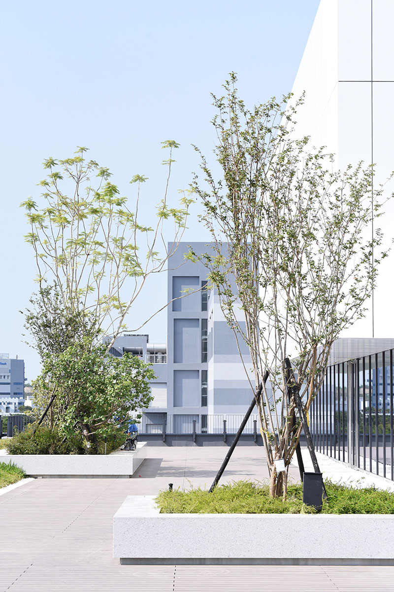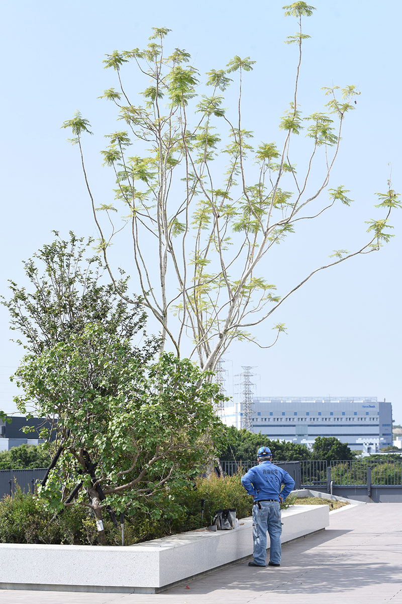 東京威力科創為亞洲最大半導體設備商,由大元建築師事務所規劃的建物中於4、5、6樓均留設有綠化空間,而董事長於規劃之初即希望於廠內難得的綠化區域能有更多開花的樹木如小花紫薇、藍花楹、小葉黃槿等,讓公司同仁繁忙之餘能有更多接觸自然景觀的機會。