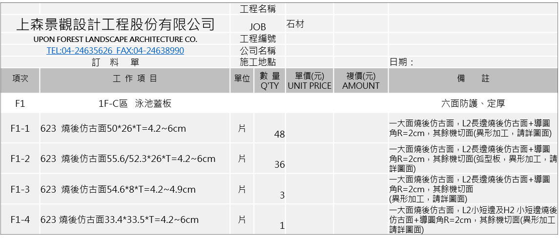 為使景觀石材工程施作能符合規定、尺寸及品質等要求,我們將會進行石材廠驗作業,到加工廠為石材製品進行各項檢查作業,以確保運至工地後能準確的施工。